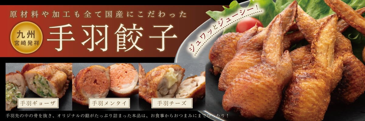 宮崎発祥!ニクノアーリー自家製 手羽餃子・手羽明太・手羽チーズ食べ比べセット!計26本(餃子10本・明太・チーズ各8本)お弁当やご家庭でどうぞ!