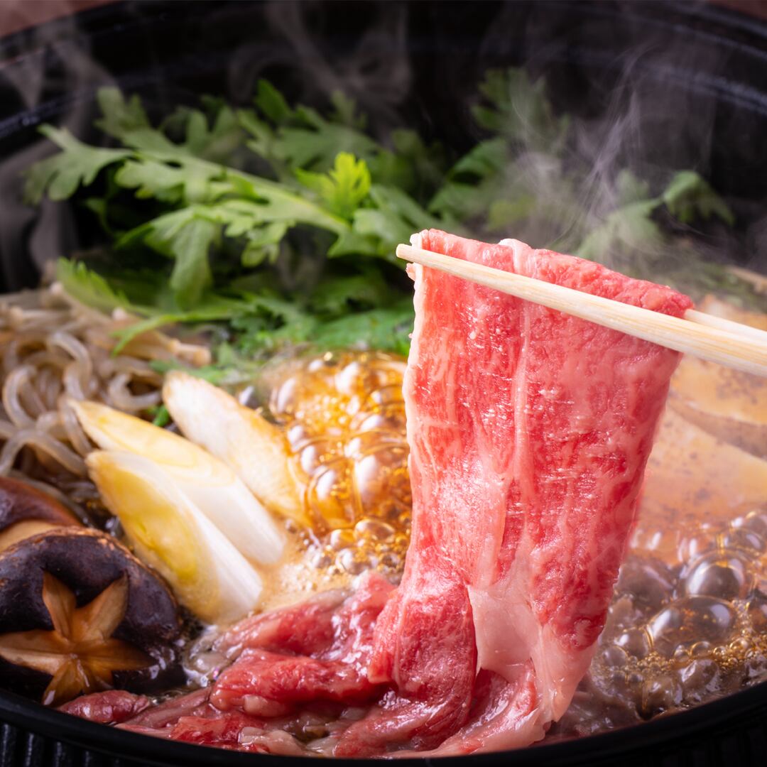 サシの入ったジューシーでとろけるような食感のロース肉は、すき焼きにおすすめ。