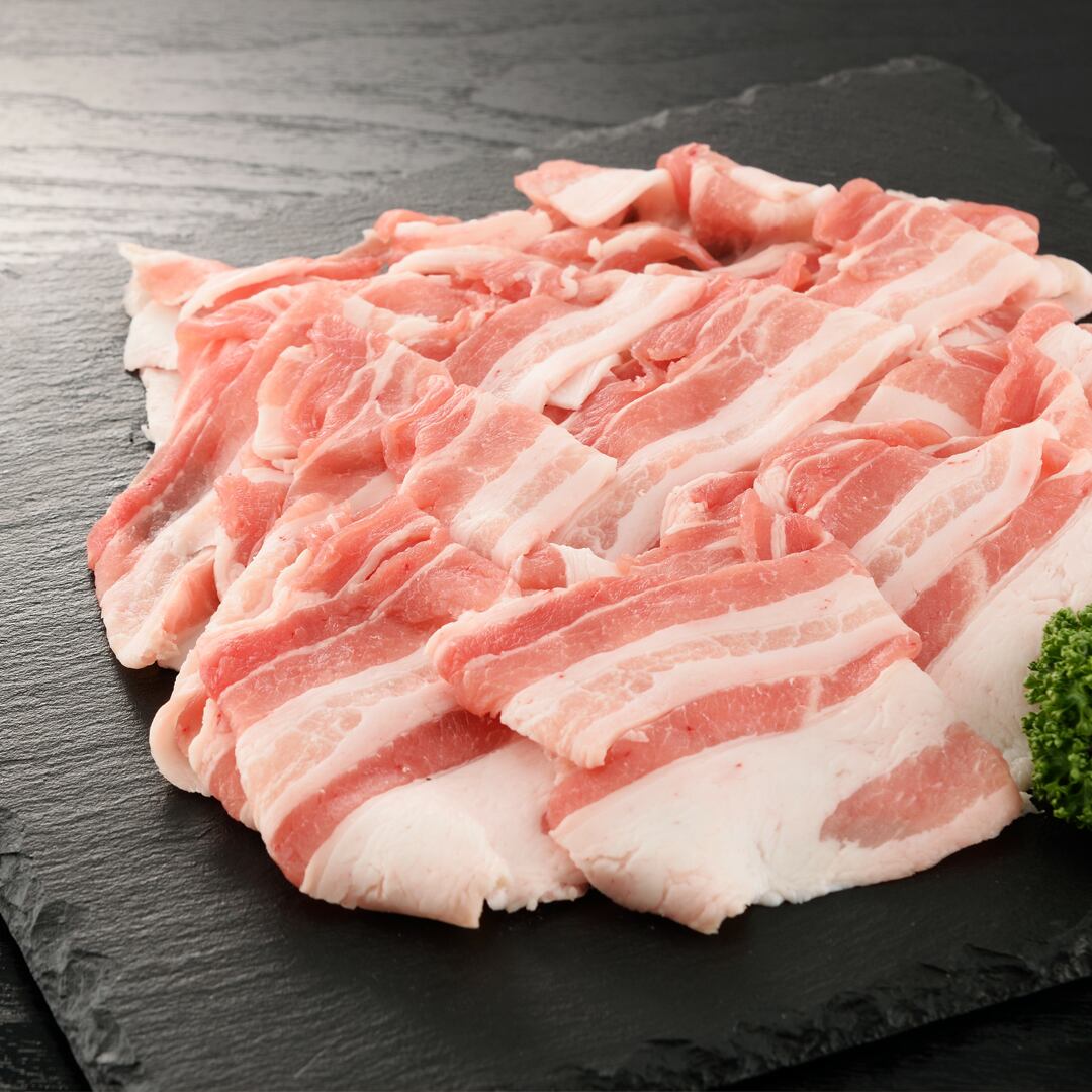 鹿児島県志布志市にあるお肉屋さんニクノアーリーが厳選した鹿児島県産の豚をしゃぶしゃぶ用にカット。