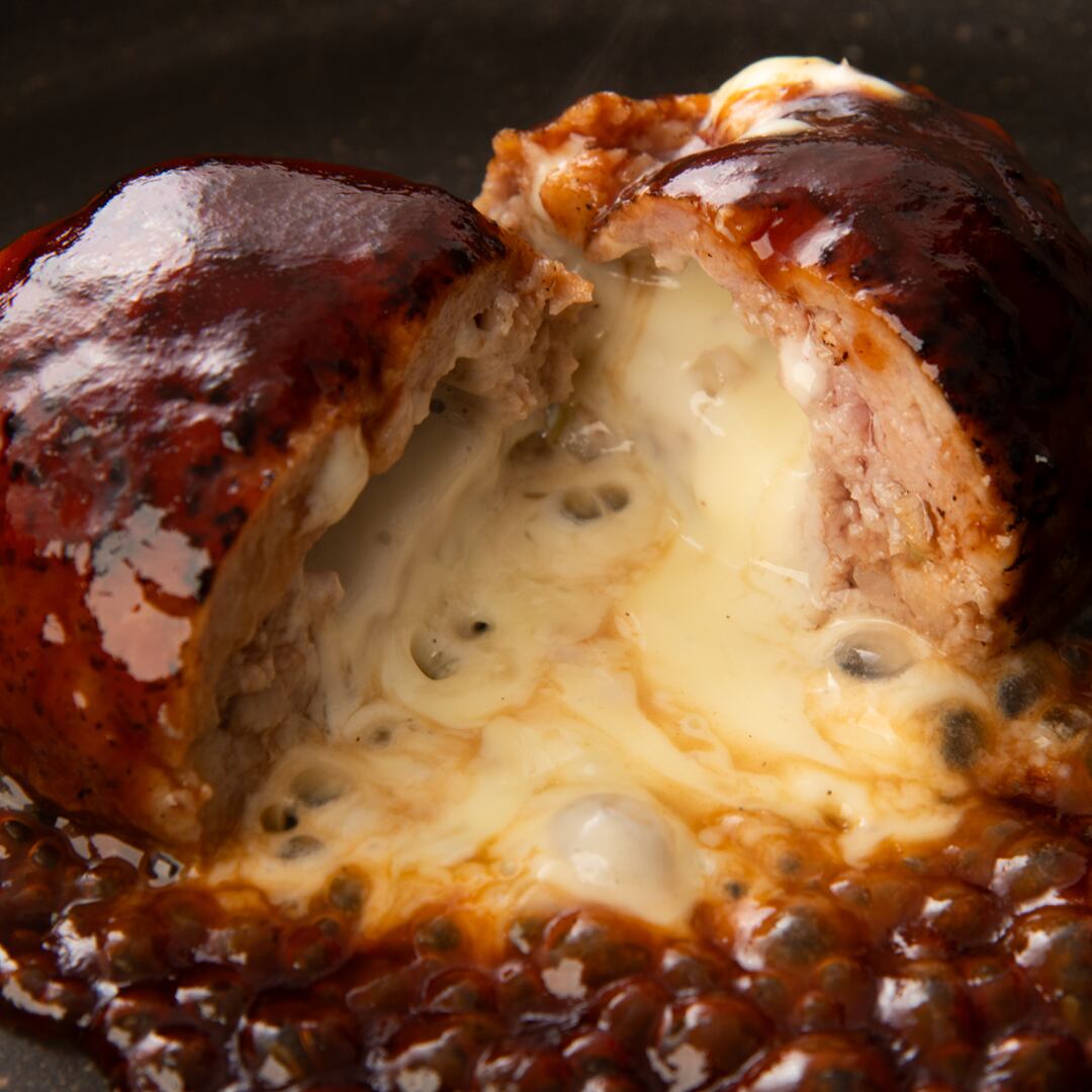 お肉は鹿児島・宮城県産の黒毛和牛をふんだんに使用した国産豚との合い挽き肉を使用しており、チーズハンバーグは焼けばあふれ出す肉汁とチーズで子供から大人まで大人気!満足度の高い一品となっています。