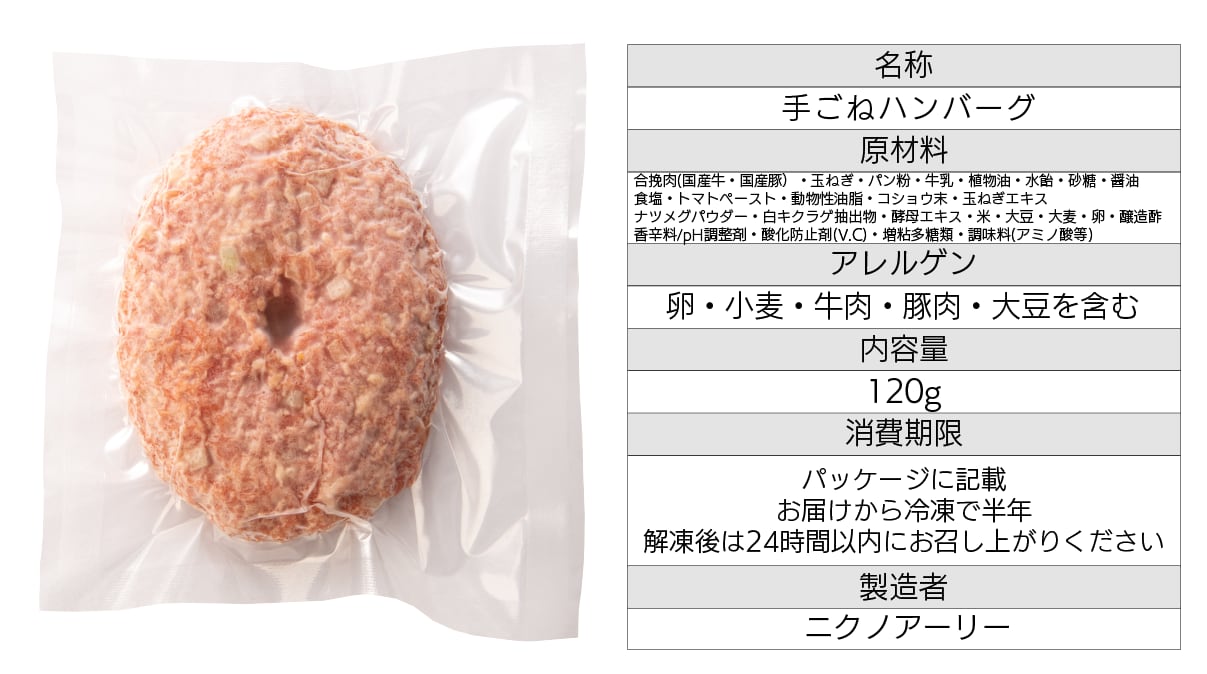 グラム数(何人前):720g(120g×手ごねハンバーグ3個、チーズハンバーグ3個(計6個)入り)